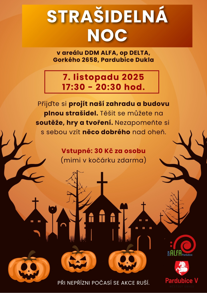V pátek 7. listopadu ožije naše komunitní zahrada a prostory DDM strašidly. Těšit se můžete na soutěže, hry a tvoření. Nezapomeňte si s sebou vzít něco dobrého nad oheň.
